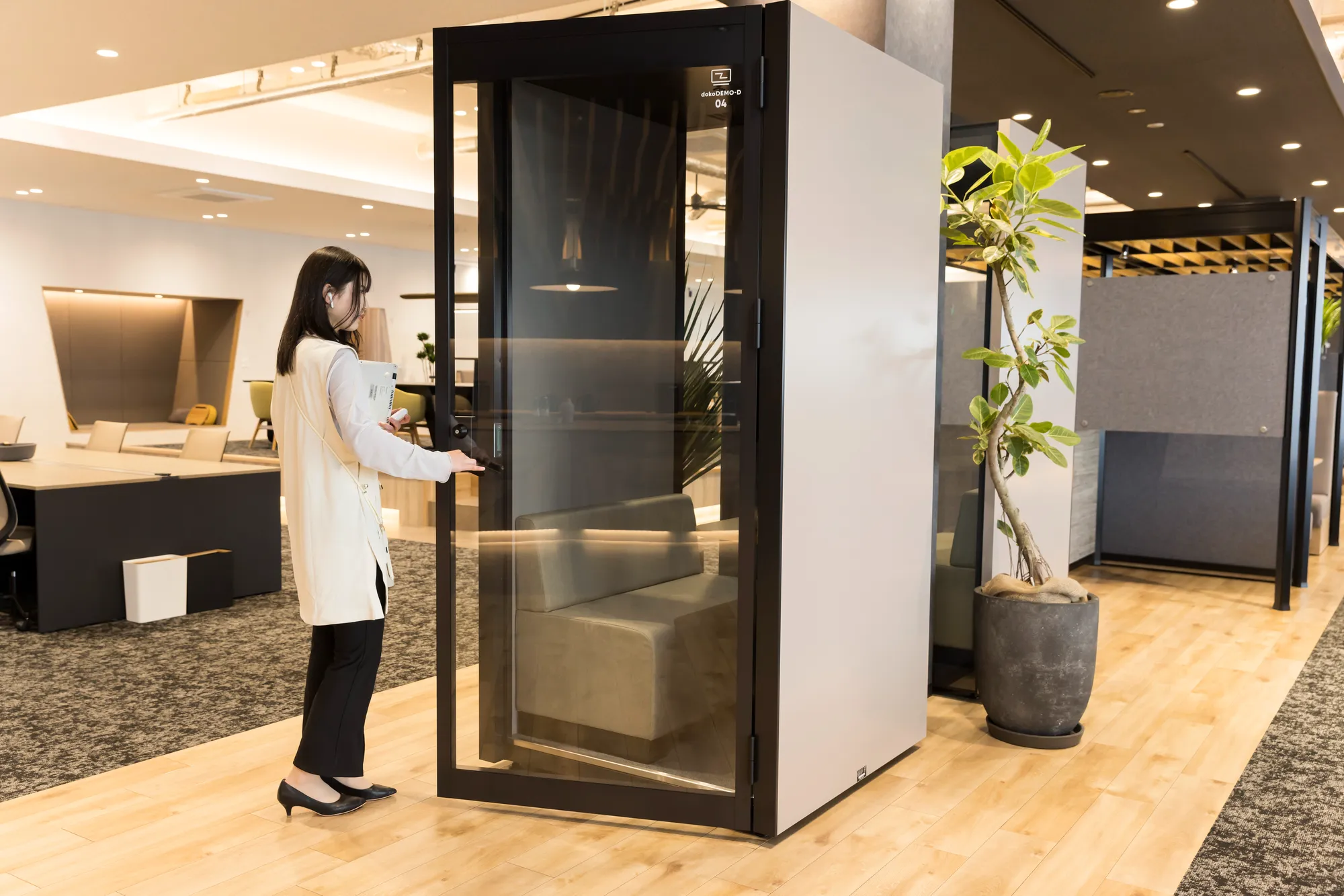 例えば、ドアの一部をすりガラスにしたり、足元だけが少し空いている構造にしたりすることで、中に人がいるかどうかを、プライバシーを侵害せずに確認できるようになります。また、個室ブースを設置する場合は、換気システムがしっかり稼働しているか、緊急時に外から開けられるようになっているかといった安全面も必ずチェックしましょう。